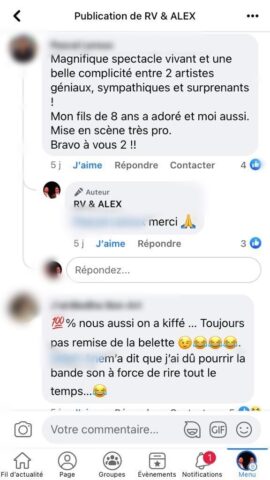 De 30 spectateurs à de très grandes jauges, le spectacle s’adapte à de nombreux contextes.